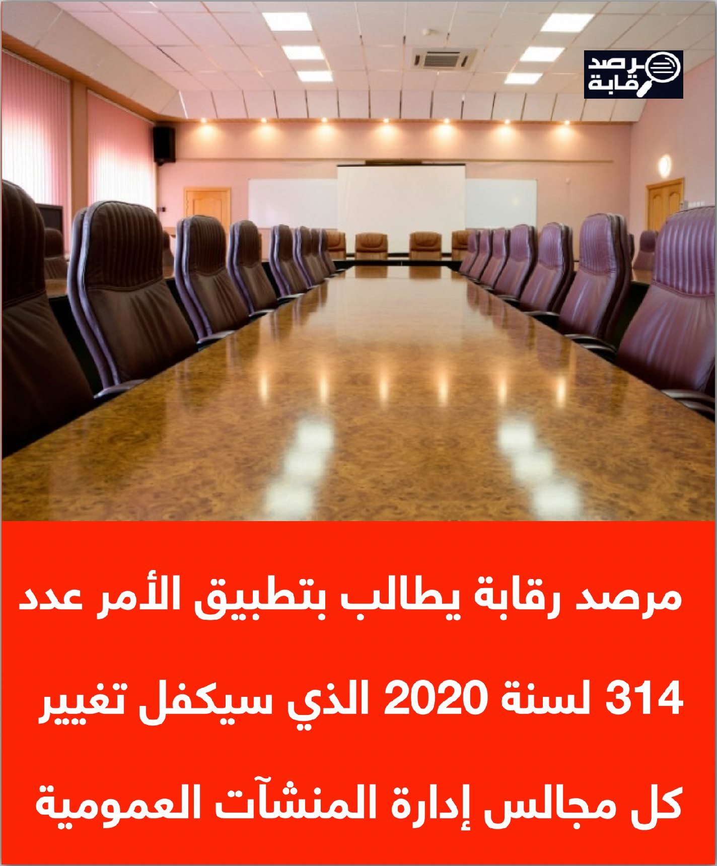 قام مرصد رقابة بمراسلة السيد رئيس الحكومة وكل وزراء حكومة السيد المشيشي بخصوص مدى تطبيق مقتضيات الأمر الحكومي عدد 314 لسنة 2020 المؤرخ في 19 ماي 2020 المتعلق بضبط مبادئ إختيار وتقييم أداء وإعفاء المتصرفين ممثلي المساهمين العموميين والمتصرفين المستقلين.