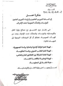 بعد أن كشفها مرصد رقابة، وزير النقل معز شقشوق يلغي المذكرة عدد 541 المؤرخة في 28 جانفي 2021 التي تفرض على كل المؤسسات والمنشآت العمومية المرور اجباريا عبر الوزارة في أي تواصل مع الهيئات العمومية.
