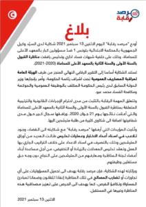 وقال “مرصد رقابة” في شكايته إنه على قناعة بوجود شبهات فساد وتلاعب بمعدلات المترشحين والتدليس بمسك واستعمال مدلس والمشاركة في ذلك على معنى احكام الفصول 96،82 ،172 وما بعده من المجلة الجزائية، ومن أجل التستر على كل المخالفات وجرائم التدليس ومخالفة قوانين الوظيفة العمومية التي تورط فيها المشتكى بهم، ومن أجل التستّر واستغلال خصائص الوظيفة للحصول على منفعة لا وجه لها لنفسه أو لغيره.
