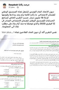اولا: اتحاد الشغل هو آخر جهة مؤهلة للتفاوض حول وضعية الصناديق، باعتباره في حد ذاته متسببا في تدهور تلك الوضعية. حيث أنه يتهرب منذ سنوات من دفع ديونه تجاه صندوق الضمان الاجتماعي البالغة 18 مليون دينار حسب آخر تقرير مراجع حسابات لذلك الصندوق (انظر المرفق).