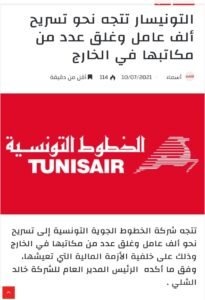الخطوط التونسية التي لديها الان 7 طائرات في الخدمة فقط و7000 عون واطار، ولديها خسائر متراكمة تقارب 1500 مليون دينار، مازالت ادارتها العامة لم تستح بعد، وتطلب دعم الدولة بمئات ملايين الدينارات ليس لتمويل برنامج اصلاح هيكلي عميق وانما للحفاظ على نفس منظومة المحاباة والمصالح، ومازال لديها الجرأة لمحاولة تمرير مناظرات شكلية لتعيين الاحباب وترضية الباندية النقابيين المرتشين، والاحتفاظ بمواقع مستقبلية لمسؤولين حاليين.
