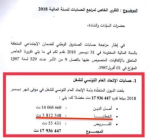 سنركز بشكل خاص على وضعية الجمعيات الرياضية التي استعملت نفوذها من أجل الحصول على اسقاط ديونها تجاه الصندوق، وعلى وضعية اتحاد الصناعة والتجارة واتحاد الفلاحين. وخاصة على وضعية الاتحاد العام التونسي للشغل المدين تجاه صندوق الضمان الاجتماعي بمبلغ قدره 18 مليون دينار منها 4 مليون دينار خطايا، والذي رفض التمتع بالعفو الاجتماعي لسنة 2017. وانسحب ممثلوه من مجلس ادارة صندوق الضمان الاجتماعي احتجاجا على عدم تفعيل الاتفاق غير القانوني الذي وقع عليه وزير الاتحاد الأسبق في حكومة المهدي جمعة عمار الينباعي لإلغاء ذلك الدين بجرة قلم. وقد رفع المرصد منذ سنتين قضية في الغرض هي اليوم محل تحقيق بالقطب القضائي الاقتصادي والمالي.