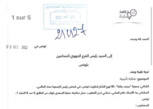 ♦️ أودع مرصد رقابة يوم أمس شكاية لدى السيد رئيس الفرع الجهوي للمحامين بتونس ضد الأستاذ المحامي لدى التعقيب حاتم العشي بخصوص خرق لواجبات وأخلاقيات مهنة المحاماة بالاستفادة من وجود وضعية تضارب مصالح مؤكدة في علاقة بملف مشروع مدينة تونس الرياضية المسمى ”المدن الرياضية العالمية تونس“ التابع لمجموعة بوخاطر الاستثمارية الاماراتية.